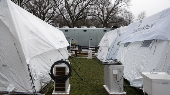 «Помещение размером где-то сорок квадратных метров...с середины марта по середину апреля было заполнено минимум тридцатью пяти, чаще большим количеством "лежачих" пациентов с подтвержденным или заподозренным ковид-19. В предбаннике...находилось еще человек двадцать, способных сидеть. В тяжелой части было порой невозможно пройти к нужному пациенту. Повсюду стояли каталки, парамедики с безумными глазами пытались найти медсестру или доктора для новоприбывшего, почти всегда кого-то откачивали и кто-то звал на помощь. По дороге к нужному мне пациенту я почти всегда видел кого-то еще, кому скорее всего скоро нужна будет консультация интенсивиста и искусственная вентиляция в течение нескольких часов».