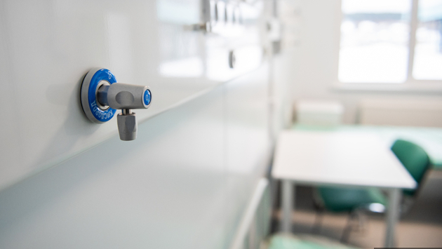 «Комплекс выдачи медицинского кислорода рассчитан на 84 точки, состоит из систем трубопроводов, увлажнителей кислорода, площадки газификации и газификатор холодный криогенный. Сам жидкий кислород хранится в трехтонном криогенном газификаторе. Кислород подается пациентам круглосуточного стационара», — поделился начальник хозяйственной части Степан Четвертных.