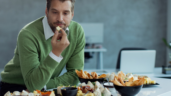 Это отличное подспорье тем, кто ест и ест и уже не понимает, влезет ли в него ещё. Особенно актуально для грядущих новогодних праздников, да и любого застолья. А чтобы не было опасности перебрать с едой, есть два золотых правила: не делать больших перерывов между приёмами пищи и не ставить строгие запреты на отдельные продукты. Насыщение формируется из нескольких составляющих: чувство наполненности в желудке, поступление питательных веществ в кровь и моральное удовлетворение съеденным, объяснила «Доктору Питеру» врач-диетолог, эндокринолог Альбина Комиссарова. Но определить, что еды достаточно, получается не у всех и не всегда, а это приводит к перееданию. В случае если считать собственные ощущения во время приёма пищи не удаётся, Комиссарова порекомендовала воспользоваться шкалой голода и насыщения. Баллы распределяйте от 1 (сильный голод) до 10 (чрезмерное перенасыщение). Золотая середина — зелёная зона. Красная зона: головокружение, тошнота и слабость, неясные и нечёткие мысли; боль и спазмы в желудке, усталость, раздражительность. Жёлтая: урчание в животе, снижение концентрации внимания, плохое настроение. Зелёная: чувство голода есть, но дискомфорта не приносит; вам комфортно, нет неприятных ощущений в желудке, мысли ясные и не о еде; получаете удовольствие от еды, чувства голода нет, но ещё можно есть. Жёлтая: чувствуете себя сытым и понимаете, что есть больше не нужно, иначе будет некомфортно; лёгкая переполненность желудка, небольшое давление. Красная: слабость, сонливость, тяжесть, распирание, плохое настроение; тошнота, большой дискомфорт в желудке, сложно пошевелиться. Следить за сигналами тела рекомендовала и врач-нутрициолог компании «Новабиом» Дарья Русанова. Одна из ошибок людей накануне застолья, например в честь Нового года, — отказываться от еды с обеда или вовсе весь день, чтобы «потом в желудок убралось больше». Долгий перерыв между приёмами пищи и сильный голод, по словам специалиста, как раз прямая дорога к перееданию.