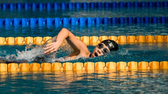 Показаны занятия плаванием, велоспортом или беговыми лыжами.