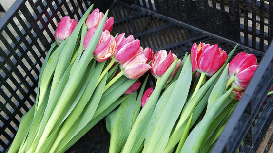 Кроме того, цветы необходимо хорошо упаковать, чтобы они не подвергались перепадам температуры. Перед тем как поставить тюльпаны в прохладную проточную воду необходимо подрезать стебли.