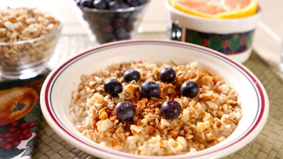 - Обогащённая железом овсянка — 9 мг (50% суточной нормы) на полстакана.