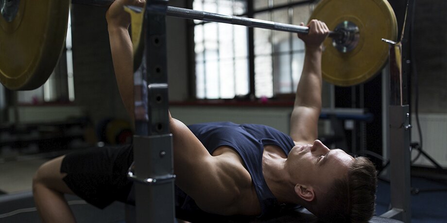 Дроп-сет. Прекрасный метод, гарантированно дающий новый результат. Отчасти это сочетание пампинга с тяжелой, силовой работой. Разберем прием на примере упражнения "жим штанги лежа". Допустим, человек жмет "на раз" сто килограммов. Тогда для выполнения метода он навешивает на штангу вес, с которым может сделать от 3 до 6 повторений. Допустим, это 90 килограммов: значит, его задача – собрать штангу весом 90 килограммов, но не большими дисками, а "пятерками". Получается, с каждой стороны будет висеть по семь дисков.