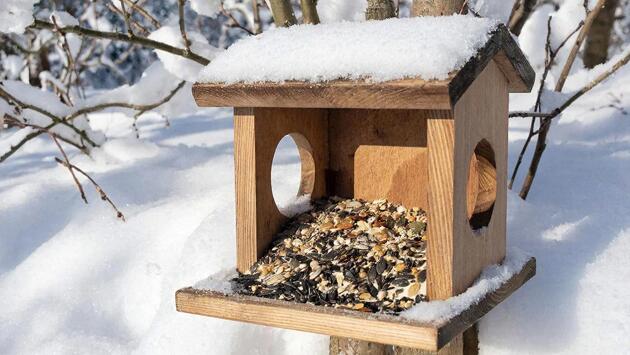 Помимо рациона следует позаботиться и о кормушке, в котором еда будет лежать. Так как за кормом прилетают много птиц, то кормушка может стать рассадником инфекций, например, сальмонеллеза. Чтобы этого не допустить, стоит раз в неделю чистить кормушку от помёта и остатков пищи, а также обдавать её кипятком или протирать безопасным антисептиком.
