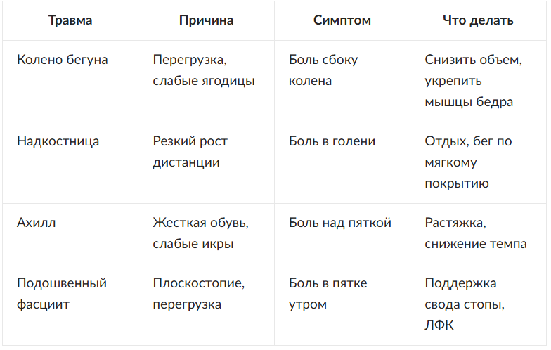 Какие травмы чаще всего возникают при беге