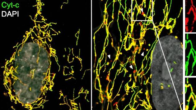 Во время апоптоза — программируемой клеточной гибели — наружная мембрана митохондрий становится проницаемой. Ученые обнаружили, что эта проницаемость (МОМР) также является признаком клеточного старения. В ходе этого процесса происходит высвобождение митохондриальной ДНК (мтДНК) в цитозоль.