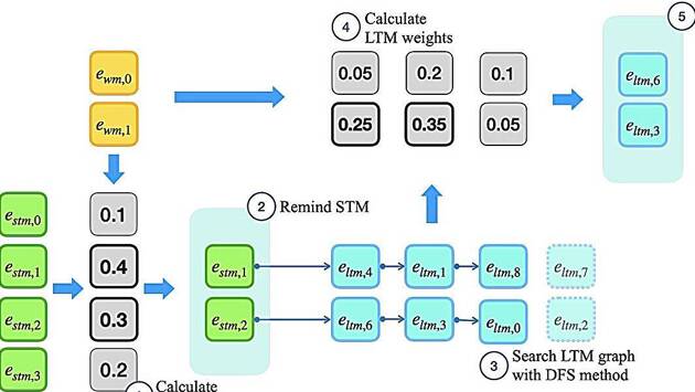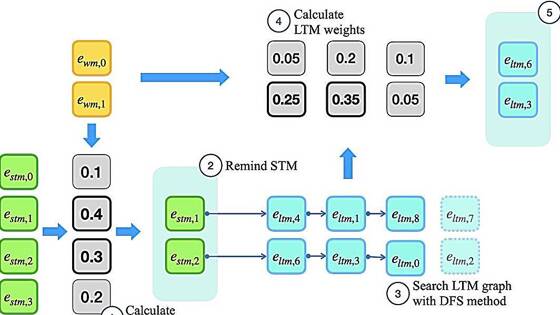 Согласно теории Хебба, которая объясняет, как мозг формирует связи между нейронами для хранения и извлечения информации, многократная одновременная активация двух нейронов укрепляет связь между ними. Новая система памяти, называемая Memoria, извлекает и хранит информацию, называемой энграммой, на нескольких уровнях (рабочая, кратковременная и долговременная память), используя коэффициенты, соответствующие силе связи между нейронами, которые изменяются в соответствии с теорией Хебба.