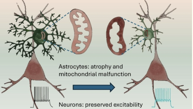 Морфологические изменения коррелируют с увеличением количества глиального фибриллярного кислого белка (GFAP), и уменьшением эзрина, белка расположенного в астроцитарных листочках. Удивительно, но эти изменения в астроцитах не сопровождались значительными изменениями возбудимости нейронов или спонтанной тормозной постсинаптической передачи сигналов.