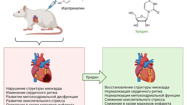 В ходе эксперимента учёные вводили животным высокие дозы аналога адреналина для моделирования патологии сердца. Это вызвало структурно-функциональные нарушения миокарда, которые проявляются в виде патологических изменений сердечного ритма, развитии окислительного стресса и дисфункции митохондрий. Однако предварительное введение уридина существенно снижало развитие данных патологий.