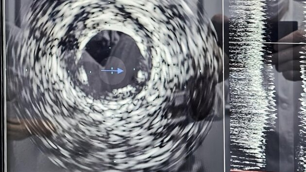 Датчик вводится в артерию и позволяет хирургам за 5-7 минут получить важную информацию о составе атеросклеротической бляшки, степени сужения артерии и других параметрах, – сообщил специалист. – Методика позволяет измерить диаметр артерии с точностью до 0,1 мм, выбрать идеально подходящий коронарный стент и оценить восстановление кровотока. Аппарат ВСУЗИ также оснащен функцией исследования физиологической оценки кровотока для более точного определения тактики лечения.
