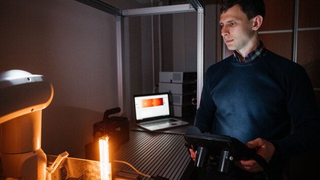 «Излучение в оптическом диапазоне, проходя сквозь прозрачный материал, слабо его нагревает. Для теплового контроля необходимо, чтобы энергия нагрева поглощалась материалом. Воздушная система нагрева и охлаждения позволит решить эту проблему. Также в дефектоскопе планируется реализовать комбинирование сканирующего теплового контроля и классического ультразвукового метода неразрушающего контроля. Это даст возможность идентифицировать дефекты в широком диапазоне глубин», — отмечает Арсений Чулков.