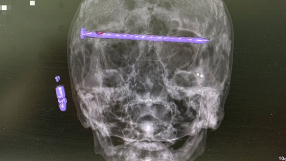 "В черепе пациента оказался гвоздь длиной 15 сантиметров, который прошел от виска к виску через обе глазницы. Ситуация осложнялась повреждением твердой оболочки мозга и сдавлением глазных яблок", - пояснили в департаменте информационной политики Свердловской области.