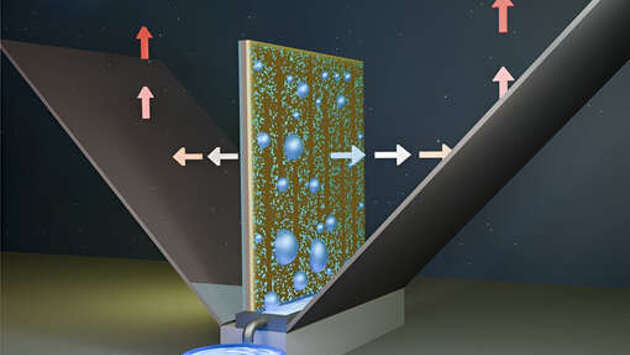 Международная группа ученых под руководством специалистов Университета науки и технологий имени короля Абдаллы в Саудовской Аравии создала пассивную систему охлаждения солнечных батарей, не требующую электричества. Исследование опубликовано в научном журнале Advanced Materials (AdvMat). Установка представляет собой вертикальную плиту-конденсатор, покрытую смазочным покрытием из полимера и силиконового масла. Гладкий слой не дает оседающей из воздуха воде накапливаться и на конденсаторе и позволяет каплям скатываться в уловитель под действием силы тяжести. Собранную таким образом воду можно использовать не только для охлаждения фотоэлементов, но и для снабжения зданий, на которых установлены солнечные панели. Новое устройство прошло шесть тестов в течение года в естественных условиях в городе Тувал. Система позволила почти вдвое увеличить скорость сбора воды по сравнению с альтернативными технологиями конденсации атмосферной влаги.