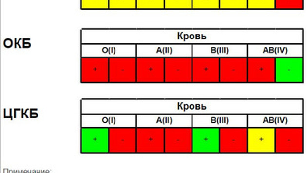 В областной клинической больнице достаточно запасов крови только четвёртой группы отрицательного резус-фактора. Остальные типы находятся в красной зоне. В Центральной городской клинической больнице хватает первой и третьей группы положительного резуса. Запасов четвёртой положительной крови осталось мало. Остальные группы оказались в категории повышенной потребности.