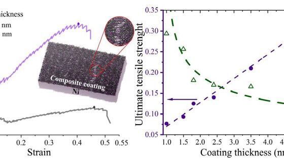 Авторы рассмотрели защитные слои разной толщины — от 1 до 5,1 нанометров, — чтобы понять, как именно этот параметр влияет на прочность и пластичность образца. Композитные покрытия толщиной больше 5,1 нанометров ученые не исследовали, предполагая, что при дальнейшем увеличении толщины прочность на разрыв и пластичность будут меняться незначительно. Такое предположение было сделано потому, что прочность никелевой поверхности с толщиной покрытия 5,1 нанометров была близка к прочности чистого композита на основе графена и никеля, то есть к максимально возможному значению.