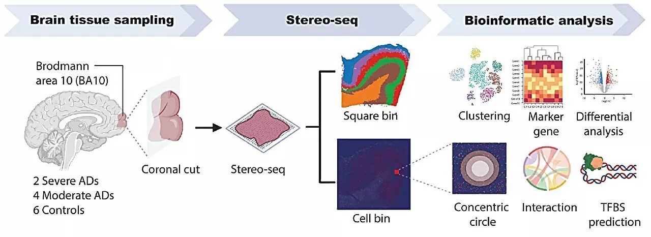 В ходе исследования ученые изучили небольшую зону префронтальной коры — область мозга, отвечающую за принятие решений и контроль эмоций. Материал был взят у шести человек на разных стадиях болезни. С помощью новой технологии — пространственной транскриптомики — удалось получить изображение тканей мозга с точностью до одной клетки, что в сотни раз превышает возможности предыдущих методов.