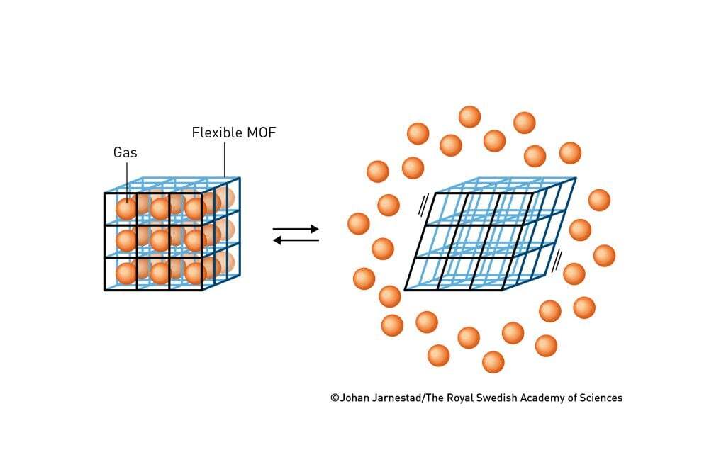 Но у самурая есть путь, и в 1998 году он описал своё видение в Bulletin of the Chemical Society of Japan. Он перечислил несколько преимуществ MOF. Например, их можно создавать из множества типов молекул, что открывает огромный потенциал для интеграции различных функций. Кроме того — и это важно — он понял, что MOF могут образовывать мягкие материалы. В отличие от цеолитов, которые обычно являются твердыми материалами, MOF содержат гибкие молекулярные строительные блоки которые могут создавать податливый материал.