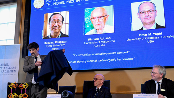 Как научить металл «дышать», «поглощать» воду, впитывать и хранить опасные вещества – об этом ученые стали задумываться с конца 1980-х годов. Однако только трем из них удалось осуществить задуманное. Это профессор Мельбурнского университета Ричард Робсон, Сусуми Китагава из Киотского университета и Омар Ягхи из Калифорнийского университета в Беркли. Им удалось создать пористые металлорганические каркасные структуры, через которые могут проходить или удерживаться газы и другие химические вещества. За это 8 октября ученым была присуждена Нобелевская премия по химии-2025.