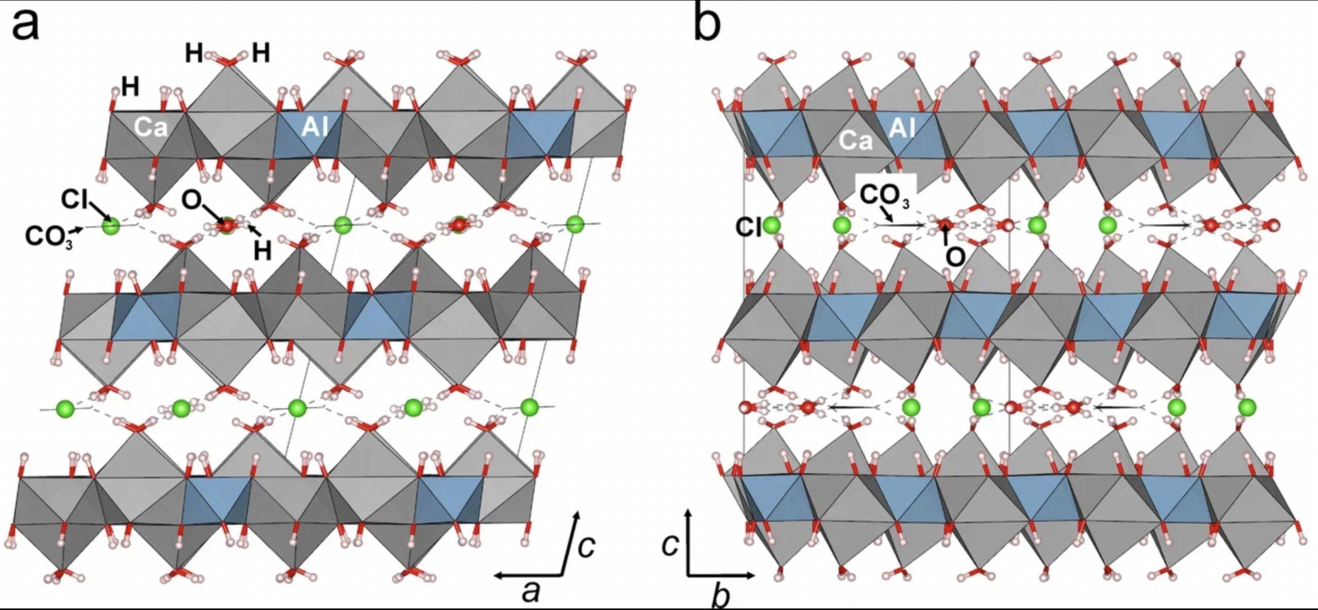 Гидрокалюмит — это минерал со слоистой структурой, напоминающей сэндвич. В нем положительно заряженные слои, содержащие металлы (кальций и алюминий), чередуются с отрицательно заряженными (анионными) слоями. За счет слоистого строения соединения этого типа можно использовать как молекулярные конструкторы, способные поглощать нежелательные анионы и тяжелые металлы из водных растворов. Кроме того, синтетический аналог гидрокалюмита добавляют в строительные цементные смеси, поскольку он помогает лучше связать компоненты и сделать конечный стройматериал прочнее. Однако до сих пор точная химическая формула и структура гидрокалюмита оставались неизвестными, поскольку собранные из разных уголков Земли образцы отличались по составу, а их систематическое исследование ранее не проводилось.