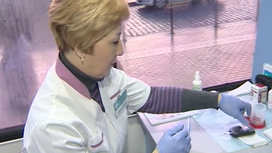 Сегодня во Всемирный день борьбы с диабетом в центре Калининграда развернулся мобильный центр здоровья. Все желающие смогли бесплатно сдать кровь на сахар. Не смотря на прохладную погоду, люди стояли в очереди. Эрика Кравченко, корреспондент: — К мобильному центру здоровья выстроилась очередь с самого раннего утра. Это пенсионеры, или те, кто работают рядом. За час кровь сдали около 60-ти человек. Пока повышения сахара в крови ни у кого не выявлено. Ольга Исакова вздыхает с облегчением. Прибор показывает 5 и 3. Это норма. Дома мама болеет диабетом.С таким диагнозом живут и знакомые. Поэтому калининградка, что называется, держит руку на пульсе. Раз в год, сдает кровь на сахар. Ольга Исакова, житель Калининграда: — В интернете посмотрели, что сегодня можно сдать кровь на сахар, шли мимо, подошли и сдали. Сегодня кровь на сахар сдал и замминистра здравоохранения области Денис Кружко. Показатели у него тоже в норме. Такие акции очень важны для борьбы с сахарным диабетом, отметил Кружко. Именно в таких мобильных лабораториях у людей есть возможность оперативно проверить состояние своего здоровья. Денис Кружко, заместитель министра здравоохранения Калининградской области: — В области у нас всего больных сахарным диабетом около 26-ти тысяч человек, из них около 300 деток. Следующий год объявлен годом диабета в Калининградской области. Поэтому соответственно, все усилия, будут направлены на решение этой важной проблемы. В этом году сахарных диабет выявили у 2-х тысяч жителей области. Это на 200 человек больше, чем в минувшем году. Среди них и дети. Только на прошлой неделе нашли эту болезнь у 4-х несовершеннолетних. Елена Никольская, главный внештатный эндокринолог министерства здравоохранения Калининградской области: — Наш современный мир, малоподвижный образ жизни, жирная пища, мамочки, которые рожают деток более 4-х килограмм, тоже имеют риск развития диабета, семейный анамнез большую роль играет. Сегодня мобильный пункт здоровья работал на площади 4 часа. За это время кровь сдали более 200 человек. У 30-ти сахар был выше нормы. Таких людей пригласят в поликлинику по месту жительства для более детального обследования. Эрика Кравченко, Наталья Будник