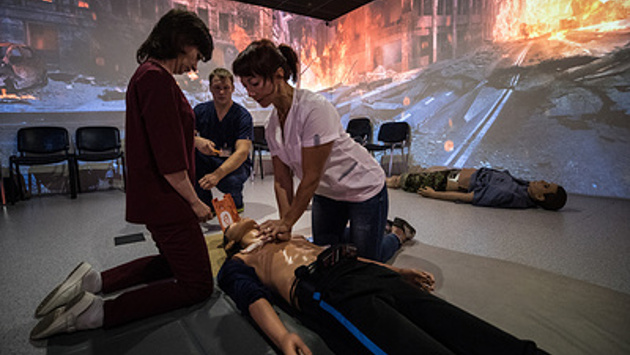 Робот-хирург и роботы-манекены, у которых бьется сердце, скачет давление, а зрачки реагируют на свет, — это тренажеры для врачей и медработников в симуляционном центре в московской больнице им. Боткина. На них учатся спасать раненных в авариях, делать многочасовые операции и принимать роды. Корреспонденты ТАСС побывали в классах, похожих на площадки для съемок фильмов-катастроф или популярных ситкомов про врачей, чтобы узнать, как эти технологии меняют медицину. Спасти рядового "Умника" За дверью с вывеской "Медицина катастроф" находится комната, стилизованная под станцию метро "Арбатская", на которой, по сценарию, поезд сошел с рельсов. Вместо одной стены здесь покореженный вагон с разбитыми окнами и дверьми. Внутри застыли пассажиры с открытыми ртами, перекошенными от ужаса. Посреди платформы лежит манекен, на первый взгляд — обычная пластиковая кукла. У другой стены — стулья, где нервничают люди в белых халатах. "Чтобы сделать искусственное дыхание — нужно запрокинуть голову пострадавшего", — объясняет им преподаватель Людмила Байчорова. Она садится на коленки перед манекеном, берет его за подбородок и укладывает голову в правильное положение. Под подбородком у него показывается дыра, в ней видны провода. Это робот "Умник". Он дышит, у него бьется сердце. Но сейчас он не подает признаков жизни. У слушателей курса два дня, а точнее 18 часов, чтобы научиться реанимировать его максимально быстро. Они по очереди выходят в центр комнаты. — Мужчина-мужчина, что с вами? — первая слушательница хлопает по щеке робота. Нащупывает пульс на шее. Считает до десяти. Просит, обращаясь в толпу: "Девушка, вызовите скорую помощь". — Стоп. Сначала хорошо, но пока вы считали, люди прибежали и начали помогать. Что надо было сделать? — спрашивает Байчорова. — Объявить, чтобы не подходили! — подсказывают из зала. — Не забываем, — кивает преподаватель. При таких происшествиях не бывает тишины, как в классе. Инженер, наблюдающий за группой, включает спецэффекты. Свет гаснет почти полностью, из динамиков кричат: "На помощь!" Слушательница делает массаж сердца, включает дефибриллятор, чтобы дать разряд, делает искусственное дыхание. На поясе "Умника" есть табло — световой индикатор: он отображает сердцебиение, дыхание. Спустя несколько секунд на индикаторе поднимается белый столбик — курсантке удалось восстановить дыхание "пациента". "Еще у робота поднимается грудная клетка, когда все получилось. Все очень реалистично, — говорит Людмила Байчорова. — Мы здесь обучаем работающих медиков. Они, конечно, умеют оказывать неотложную помощь. Но они по работе не сталкиваются с медициной катастроф. Есть, допустим, слушатели из психиатрических клиник. Мы учим, чтобы при необходимости они не растерялись, а делали все правильно. Искусственное дыхание, например, — это не так просто. Если воздух пойдет не в легкие, а в желудок — у пациента будут осложнения. Нельзя паниковать". Слушатели имеют дело с реальными медприборами. "Это настоящий дефибриллятор — кстати, продвинутый: он анализирует состояние пациента, подсказывает действия, — говорит преподаватель. — Такие приборы создавались, чтобы ими могли пользоваться обычные люди без медицинского образования. А медикам они упрощают жизнь. Технологии помогают как в обучении, так и в работе". Что умеет рука робота "Да Винчи" 