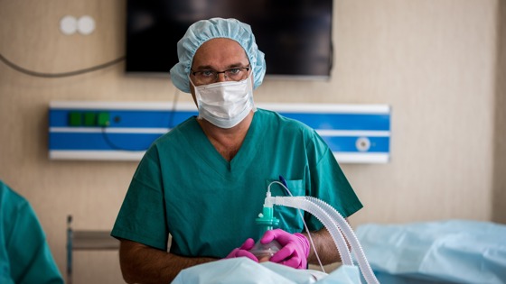 Седеющий доктор в маске просит его не фотографировать — он сосредоточен, будто на медитации, и крепко держит плачущего младенца с аномально большой головой. Ребёнка только что прооперировали — и разбудили, чтобы убедиться, что с ним всё хорошо. Он затихает в руках анестезиолога, ждущего коллег с каталкой, которые отвезут малыша в реанимацию. Там доктор тоже будет присматривать за маленьким пациентом — пока ребёнка не переведут в обычную палату. Не только маленькие пациенты не помнят анестезиологов-реаниматологов — и у 56-летнего крепкого мужчины, с трудом пробуждающегося сейчас после краниопластики («ремонт» дефекта черепа), вряд ли потом всплывёт в памяти, как врач просил: «Слава, глаза открывай, пожалуйста!». «Несмотря на то что пациентов мы будим прямо на столе и добиваемся от них вменяемого разговора, большинство из них начинают себя осознавать позже. Мы не можем перевести пациента в отделение, если не уверены полностью, что всё будет хорошо. Но многие пациенты говорят, что они вспомнили себя уже в реанимации, в палате. Это явление называется ретроградная амнезия — попросту говоря, это когда человек забывает некоторые факты, которые предшествовали анестезии и другим событиям. Как при тяжёлой пьянке — напился, потом что-то творил и забыл об этом, когда очнулся. Другое дело, что для того, чтобы создать средство для наркоза, трудятся фармкомпании всего мира, и они всё безопаснее и переносятся всё легче, и последствий всё меньше и меньше. Если напиться дешёвым поддельным виски, то потом похмелье будет гораздо тяжелее. Но людям это нравится, многим, они с удовольствием переживают это вновь и вновь. А если их после наркоза чуть-чуть потошнит, они обязательно выскажут, что наркоз был отвратительным. А водку с пивом мешать — нормально?» — размышляет в перерыве между операциями заведующий отделением анестезиологии и реанимации федерального центра нейрохирургии в Новосибирске Всеволод Лучанский, врач с 26-летним стажем. Первым делом заведующий объясняет, что, вопреки популярному мнению об анестезиологах, они не просто доктора, которые ответственны за сон пациента во время операции. «Мы занимаемся защитой пациента от хирургической агрессии и компенсацией сопутствующих состояний. Это на первом месте. Мы занимаемся безопасностью пациента, который находится в клинике и переживает хирургические операции. Какими методами это делается? Методов на самом деле много — начиная от местной анестезии (под ней можно провести небольшую операцию) и до сложных методов — искусственное кровообращение, экстракорпоральная детоксикация (очищение крови от токсичных веществ. — М.М.), гемодиализ, всё это в распоряжении современного анестезиолога-реаниматолога. Проведение наркоза — назначение препаратов, которые действуют как обезболивающее и снотворное, — это небольшая часть работы», — отмечает Лучанский. Анестезиолог-реаниматолог кажется самым спокойным человеком в операционной — пока хирург гневно требует от коллеги-ассистента работать быстрее на сложной операции на сосудах головного мозга и от его крика будто электризуется воздух в комнате, анестезиолог невозмутимо следит за тем, как чувствует себя пациент. Врач объясняет, что современный наркоз, или общая анестезия, состоит из множества компонентов. «Если вы вспомните фильм про Шурика