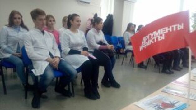 В пресс-центре «АиФ Саратов» 28 ноября в ходе профилактического проекта «Время здоровья», который реализует редакция еженедельника «АиФ» совместно с Минздравом РФ а также Минзравом Саратовской области прошла лекция для студентов областного базового медицинского колледжа. В акции приняла участие заместитель директора по воспитательной работе – начальник отдела воспитательной и социальной работы Саратовского областного базового медицинского колледжа Галина Тюкалина которая пришла вместе со студентами 2 курса. Лектором выступила начальник отдела межведомственных и внешних связей, врач-методист ГУЗ «Саратовский областной центр медицинской профилактики» Наталия Лобанова. Она показала студентам-медикам презентацию, посвященную правилам здорового образа жизни и вакцинации. Речь зашла о многих компонентах ЗОЖ от необходимости отказа от вредных привычек, до рационального и питания даже позитивных эмоций, которые оказывают значительное влияние на самочувствие человека Я очень рада видеть в этом зале студентов-медиков. В этом году, который объявлен годом волонтера, вы наши помощники по проведению мероприятий, посвященных пропаганде здорового образа жизни. Именно поэтому на вас возлагается большая ответственность. Начинать нужно прежде с себя. Сейчас начало зимы, а значит сезон обострения инфекционных болезней ОРВИ и гриппа. Надеюсь многие из вас уже сделали прививку. - начала разговор Наталья Лобанова. В дальнейшем речь зашла об опасности распространения респираторных заболеваний и вероятности получить серьезные осложнения. Также врач напомнила об основных мерах профилактики этих заболеваний, в том числе необходимости носить специальные маски. Были отмечены особенности вакцинации вируса гриппа вакционой «Совигрипп» и ситуациях в которых некоторым людям такая процедура может навредить. «Может возникнуть реакция если у человека аллергия на куриный белок, но это бывает крайне редко, - заметила она. - Сами прививки должны проходить только в медучреждении и под присмотром специалиста, который должен предварительно выдать разрешение на прививку.» Обсудили в ходе встречи и методы немедицинской профилактики. «Мы должны с вами вести здоровый образ жизни, правильно питаться и использовать в своем рационе достаточное количество фруктов и овощей» - посоветовал специалист. Встреча продолжалась около часа. За это время были затронуты темы вреда курения, опасности злоупотребления слабоалкогольными напитками и другими негативными факторами жизни современной молодежи.