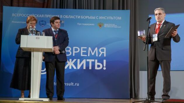 В рамках прошедшего в Москве XI Международного конгресса «Нейрореабилитация-2019» прошла торжественная церемония вручения Всероссийской премии в области здравоохранения «Время жить!». Эта премия отмечает наивысшие достижения в области профилактики, лечения и реабилитации пациентов после инсульта. В номинации «Лучший региональный сосудистый центр» в этом году премию получила Свердловская областная клиническая больница № 1 (СОКБ №1). «Эта премия вручается второй раз. Первый раз она вручалась в 2016 году, когда мы взяли практически все номинации, – рассказал руководитель регионального сосудистого центра СОКБ №1, доктор медицинских наук Андрей Белкин.– Тогда Свердловская область победила как территория, где лучше всего организована помощь пациентам после инсульта. Плюс региональный сосудистый центр областной больницы получил награду, как «Лучшая организация по реабилитации первого этапа», а клинический институт мозга как «Лучшая организация по реабилитации третьего этапа». Прошло три года и вновь мы стали лауреатом, как лучший региональный сосудистый центр РФ». Профессор отметил слаженную работу всех служб больницы, благодаря которой медучреждение уже во второй раз становится лауреатом престижной премии. Но особенно он отметил важность развития в регионе технологий телемедицины. «Благодаря тому, что в течение десяти лет мы успешно применяли технологии телемедицинской маршрутизации и телемедицинского мониторинга, мы остаемся единственным по сути региональным сосудистым центром, который обеспечивает маршрутизацию пациентов и их полный охват на такой большой территории с таким большим населением. Это большой плюс. Вообще повторно не принято награждать одно и то же подразделение, но тут просто не было выбора – мы объективно идем с большим отрывом от других», – подчеркнул Андрей Белкин. Цель премии «Время жить!» – привлечь внимание общественности к теме инсульта, а также отметить заслуги коллективов и врачей, отдельных специалистов, руководителей медучреждений и государственных деятелей в борьбе с этим заболеванием. Премия была учреждена в 2016 году по инициативе Национальной ассоциации по борьбе с инсультом (НАБИ) и Союза реабилитологов России при поддержке Министерства здравоохранения РФ. На церемонии вручения премии выступил заместитель министра здравоохранения РФ Евгений Камкин, который отметил важность и актуальность проблемы. «Снижение сердечно-сосудистой смертности является одним из приоритетных направлений федеральных проектов в области здравоохранения. Перед нами стоят задачи по увеличению продолжительности и улучшению качества жизни россиян», – сказал на церемонии Камкин.