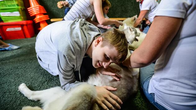 В России увеличивается число людей, больных аутизмом. По данным Минздрава, за последние пять лет данный диагноз стали ставить в два раза чаще. Вылечить аутизм невозможно — помощь больному заключается в смягчении симптомов. Одним из самых трогательных и приятных методов коррекции заболевания считается канистерапия — реабилитация с использованием специально обученных собак. Этот метод применяется врачами для лечения различных болезней с 60-х годов прошлого века. Идея терапии с участием животных появилась у американского психиатра Бориса Левинсона, который опытным путём установил, что пациенты получают заряд положительных эмоций, когда приходят на сеансы и встречаются с собакой. С тех пор метод начал набирать популярность. Врачи утверждают — взаимодействие с собакой способствует развитию умственных и улучшению двигательных функций. Также оно помогает развитию эмоциональной сферы. Канистерапию также используют для лечения ДЦП, гиперактивности, психических заболеваний. Эксперты говорят: собаки помогают больному человеку наладить контакт с окружающим миром. Она учит любви, принятию и взаимодействию с окружающими. В России пока мало организаций, которые профессионально занимаются таким лечением. News.ru побывал на занятии в одной из них — ассоциации «Объединенные Энималтерапевты». Пушистое, белое облако с двумя карими глазами — самоеду Говрюше сейчас год. Пёс очень дружелюбно относится к людям, даже к тем, кто отмахивается от него и истошно кричит. Это обычная реакция аутиста на непривычный объект. Больные этим недугом, как неприступная крепость, и чтобы она пала, нужна кропотливая работа психологов и педагогов и радушная терпимость самих животных. Матвею Бородину 15 лет. Мальчик улыбается окружающим и с готовностью поёт на публику песню «Прекрасное далёко». Еще год назад парень был замкнутым и необщительным. Не отпускал мамину руку и разговаривал только с близкими. Перед собаками он вовсе испытывал панический страх. Касание пушистого хвоста приводило мальчика в ужас. С Матвеем начали заниматься канистерапией в начале этого года. В начале он смотрел на животных со стороны, но уже через месяц решился дотронуться. Постепенно мальчик проникся к мохнатым терапевтам любовью. Сейчас он заходит в комнату и сразу обнимает всех собак. На живот самоеду Гаврюше он кладёт голову. «Как пахнет самоед?» — спрашивает психолог Ольга Богомякова. «Хорошо пахнет», — говорит мальчик. По словам мамы Матвея Маргариты Бородиной, с тех пор как Матвея начали лечить с помощью канистерапии, его социальные навыки значительно улучшились. Проще стал подходить к людям, если раньше была настороженность, то сейчас она исчезла. Или стоял в стороне, или вовсе не замечал тех, кто вокруг. Сейчас спокойно подходит, осматривает всех, — говорит мама. У 17-летнего Евгения диагностировали аутизм в три года. Симптомы стандартные — задержка речевого развития и боязнь посторонних людей. Обучение в коррекционной школе не способствовало социализации. Парень до сих пор как в раковине — закрытая поза, взгляд в пол, повторение одних и тех же слов. «8 июля — День семьи любви и верности», — повторяет он в 30-й раз информацию, прочитанную в Интернете. Мама уговаривает его отвлечься от смартфона и обратить внимание на собаку. Гаврюша делает робкие попытки вступить с ним в к