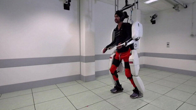 Парализованный пациент ходит, управляя экзоскелетом силой мысли. Видео