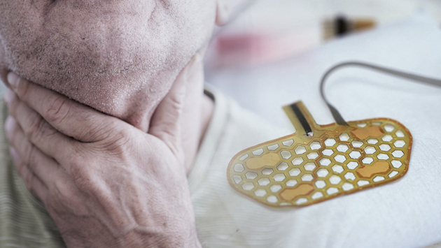 Ученые Университета Пердью представили носимый прибор, который облегчить жизнь людям с расстройствами глотания. Статья исследователей опубликована в журнале Science Advances. Чтобы правильно совершить акт глотания требуется точная координация более чем 30 пар мышц головы и шеи, шести пар черепных нервов, а также сложной схемы в стволе головного мозга и нескольких его областях. Даже небольшое нарушение в любом из этих механизмов может привести к серьезным нарушениям глотания. У более девяти миллионов взрослых и 500 тысяч детей в США ежегодно диагностируются нарушения в глотании. Исследователи создали клеящийся сенсор, который прочно прикрепляется к области шеи и соединяется с помощью небольших кабелей с беспроводным передатчиком. Наклеенный на кожу, он измеряет и записывает мышечную активность и движение, связанные с глотанием. Затем информация передается по беспроводной сети с помощью блока, закрепленного на рубашке пользователя. Затем информация записывается для последующего анализа врачом. На его основании можно составить необходимый курс упражнений. «Наше устройство уникально тем, что оно специально создано, чтобы хорошо работать с маленькими и сложными мышцами, связанными с процессом глотания, — подчеркнул один из авторов работы, сотрудник Университета Пердью Чи Хван Ли. — Наш датчик клеится на кожу. Он растяжим и гибок, что позволяет ему повторять форму головы и шеи и плотно прилегать к коже. Подключенный к такому датчику блок содержит электронные чипы и более жесткие компоненты». Такие датчики-наклейки можно легко удалить, они созданы из недорогих компонентов и могут быть использованы до десяти раз. Ученые завершили доклинические исследования устройства и в настоящее время проводят клинические испытания. Теперь авторы ищут партнеров для коммерческой реализации своего продукта. Понравился материал? Добавьте Indicator.Ru в «Мои источники» Яндекс.Новостей и читайте нас чаще.
