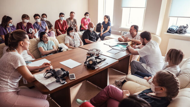 «Большая Балашиха» продолжает рассказ о работе Балашихинского родильного дома, перепрофилированного в инфекционное отделение из-за угрозы распространения коронавирусной инфекции. Заведующий инфекционным отделением Алексей Козлов и медсестра Балашихинского родильного дома Анна Тюгаева рассказали «Большой Балашихе», с чем приходится сталкиваться на ежедневной войне с чумой XXI века. Раньше Алексей Козлов работал акушером-гинекологом, после перепрофилирования роддома его назначили заведующим вторым инфекционным отделением, которое рассчитано на 66 коек. «У большинства из нас в дипломе написано — «Лечебное дело». Многие схемы терапии, в том числе антибактериальные, известны достаточно давно. Тем более что врачебная специальность такая, что мы непрерывно чему-то учимся. Научились диагностировать новую инфекцию, контролировать, оценивать её динамику, поняли, какие препараты использовать при лечении», — рассказал «Большой Балашихе» Алексей Козлов. Перед началом смены заведующие отделениями и врачи участвуют в утренних конференциях, которые проводят заместители главного врача Михаил Кудрявцев и Станислав Крупнов. На таких летучках медики обсуждают насущные проблемы, а уходящая смена докладывает о прошедшем дежурстве. Кроме того, планируется новый день, в том числе выписка выздоровевших. «В первые две недели работы во втором инфекционном отделении выписали более двадцати человек. Мы считаем, что это неплохо. Получаем отрицательные результаты по мазкам и освобождаем койки для других больных. Например, сегодня планируем выписать от пяти до десяти человек», — сообщил Алексей Козлов. По окончании конференции доктора отправляются в грязную зону, делают обход больных, корректируют лечение, делают новые назначения в плане инструментального обследования пациентов. «Пациенты у нас лежат разновозрастные. Пожилых побольше, потому что у них эта болезнь протекает более тяжело. При планировании работы отделения смущал вопрос, как поступать с курящими, потому что им сложнее из-за своей привычки постоянно находиться на лечении. Оказалось, что в моём отделении ни один больной не курит. Да и вообще, статистика говорит о том, что 84 процентов заболевших — не курильщики», — отметил Алексей Козлов. Еженедельно у медиков, работающих в грязной зоне, берут мазки из носа и ротоглотки на так называемую ПЦР-реакцию. Полимеразная цепная реакция — это метод молекулярной биологии, позволяющий выявить инфекцию на самом раннем этапе. Мазки для анализа отправляют в лабораторию в Мытищах. Результаты обычно становятся известны через несколько дней. При положительном результате на мазок и бессимптомном прохождении болезни медика рекомендуется изолировать как носителя. В новом режиме медучреждение начало работать со 20 апреля. При перепрофилировании роддома медиков тщательно готовили к новой специфике работы, с врачами занимались психологи, а обучение проходило на портале непрерывного медицинского и фармацевтического образования Минздрава России. «К нам приезжали профильные специалисты, мы изучали маршрутизацию, схемы лечения больных. Наше отделение изначально было коечное, поэтому нам было проще в этом отношении. Первые два дня было относительно спокойно. Потом начались лавинообразные поступления, мы заполнились достаточно быстро, и в