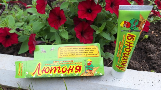 Для тех, кому не нравится пользоваться средствами в аэрозольном баллончике, компания «Ваше хозяйство» выпустило крем «Лютоня». У него слега маслянистая структура с приятным запахом. Пользовать кремом просто: намазать на открытые участки кожи (втирать не нужно), немного подождать, пока впитается, и можно смело отправляться на прогулку.