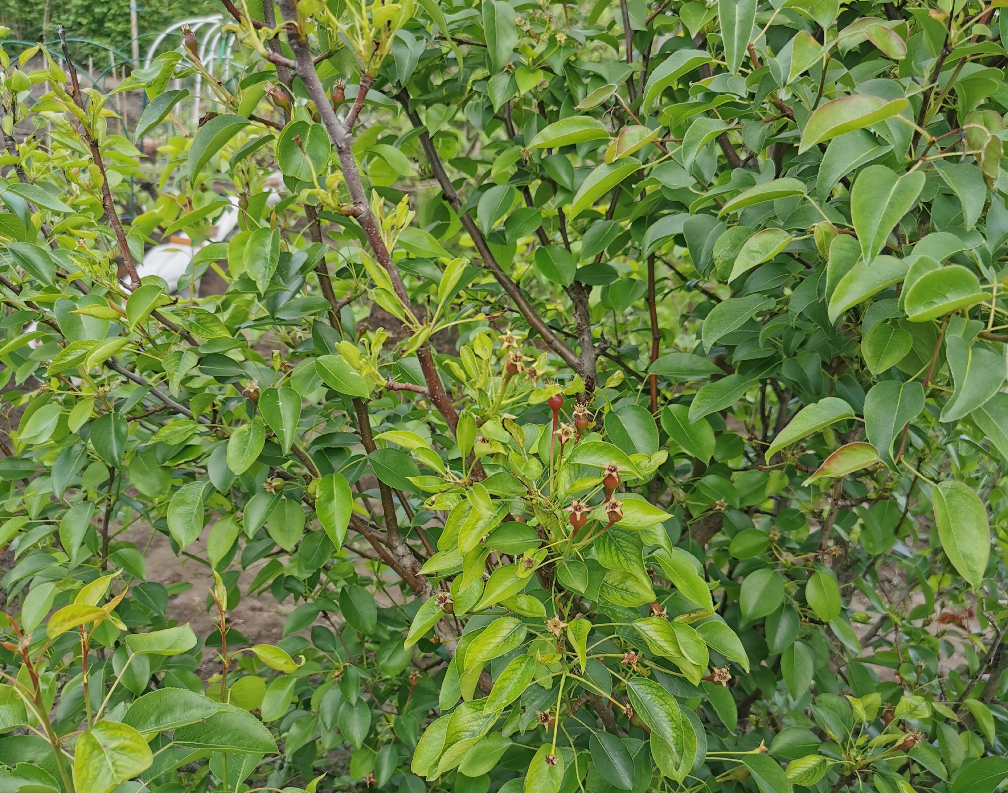 Груша — тоже объект проблемный и болезненный, но на момент съемки выглядит не плохо, так как цвела позже, чем косточковые.